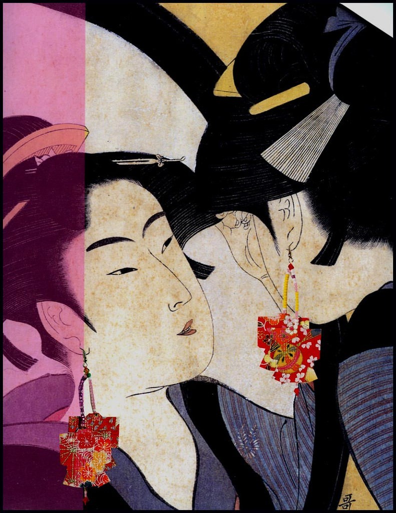 con stampe di antichi kimono giapponesi, francobolli venuti da lontano e