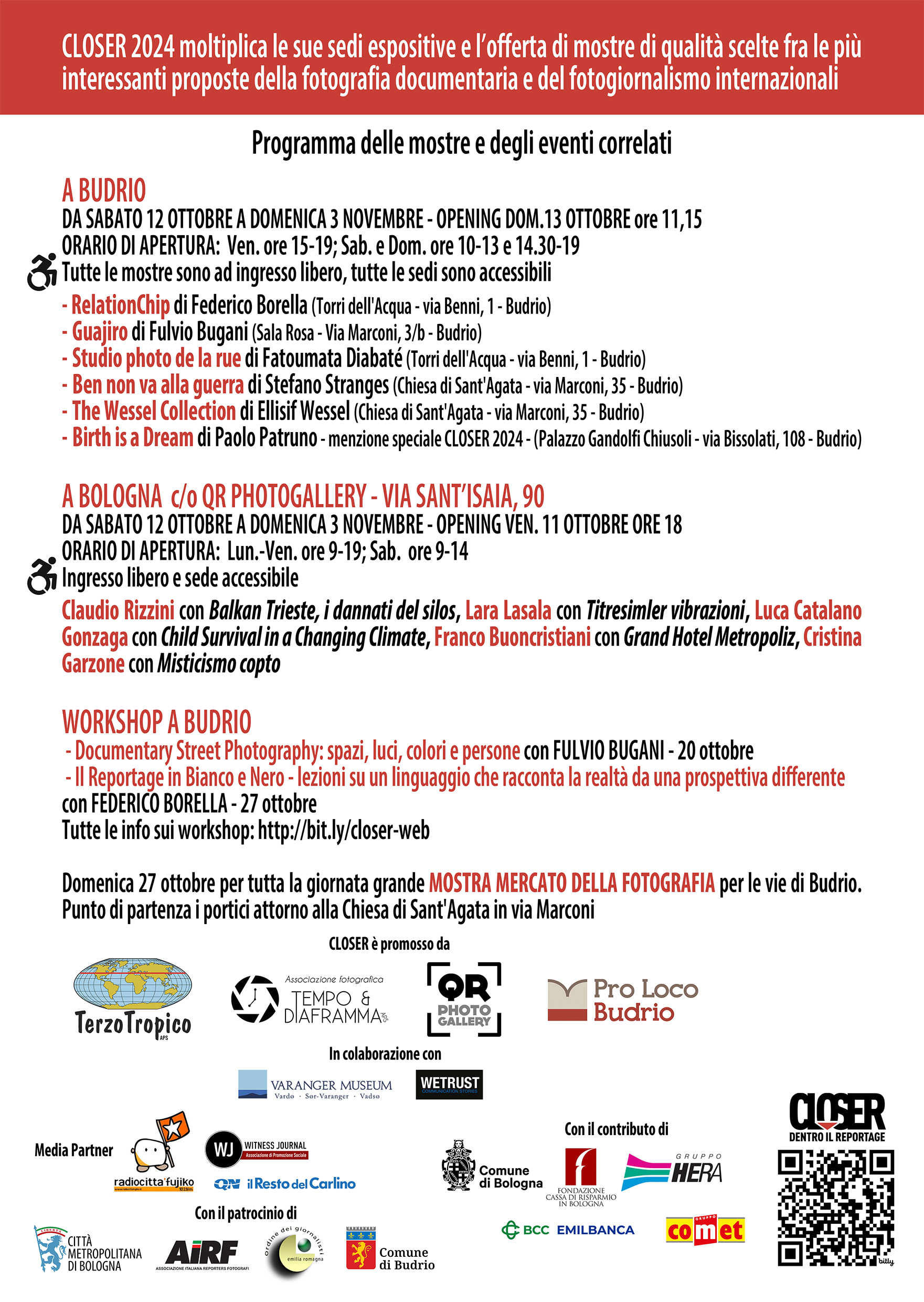 Domenica 13, invece, sono state inaugurate le mostre a Budrio delle opere del Festival CLOSER dentro il reportage alla presenza della sindaca Debora Badiali, degli autori e delle associazioni che hanno organizzato l’evento.