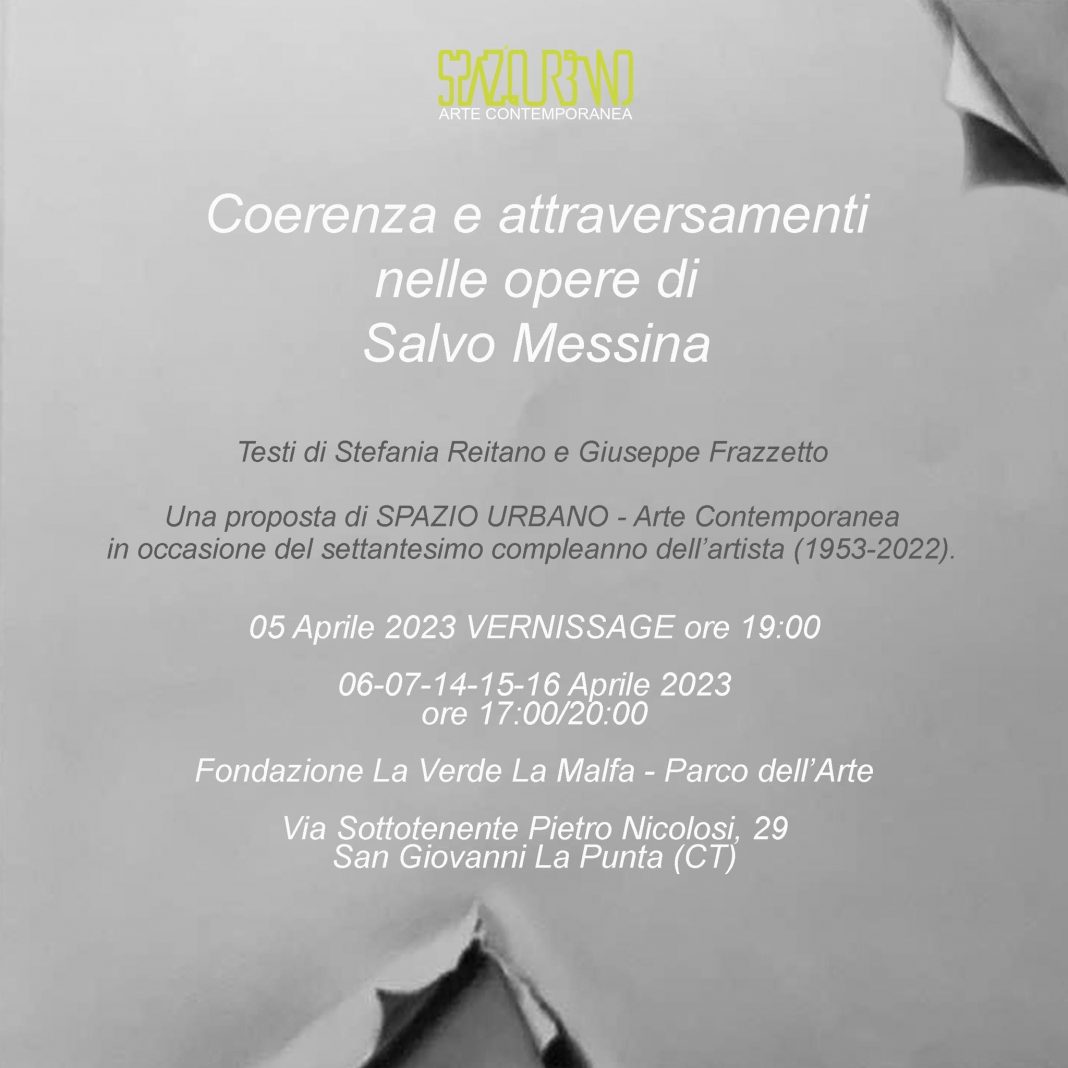 Coerenza e attraversamenti nelle opere di Salvo Messina è una mostra promossa dall’associazione culturale Spazio Urbano Arte Contemporanea, in occasione del 70° compleanno dell’artista (1953-2022).