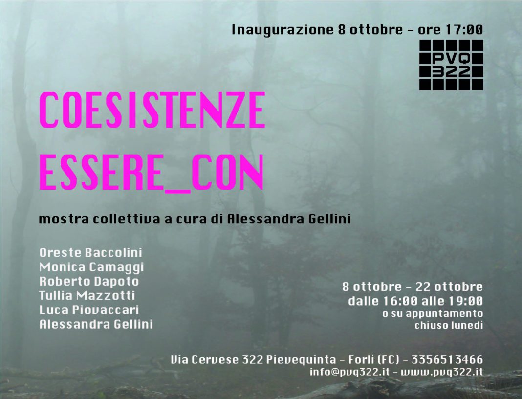 Mostra collettiva di arte contemporanea a cura di Alessandra Gellini. “Coesistenze essere_con” mette in dialogo le opere di Oreste Baccolini, Monica Camaggi, Roberto Dapoto, Tullia Mazzotti, Luca Piovaccari e Alessandra Gellini.