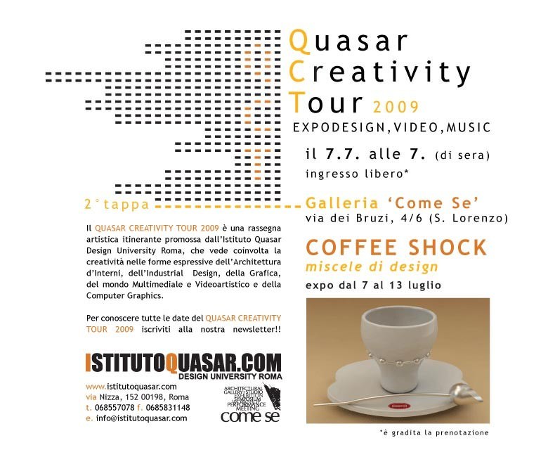 Seconda tappa del Quasar Creativity Tour 2009 vedrà come protagonista il caffè e i suoi accessori, rielaborati e riproposti in tutte le possibili declinazioni concesse al design.