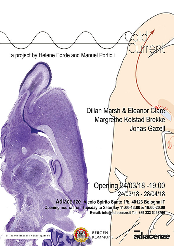 Sabato 24 marzo alle ore 19 Adiacenze inaugura “Cold Current”, mostra collettiva di quattro artisti norvegesi, Margrethe Kolstad Brekke, Jonas Gazell, Dillan Marsh e Eleanor Clare, a cura di Helene Førde e Manuel Portioli.