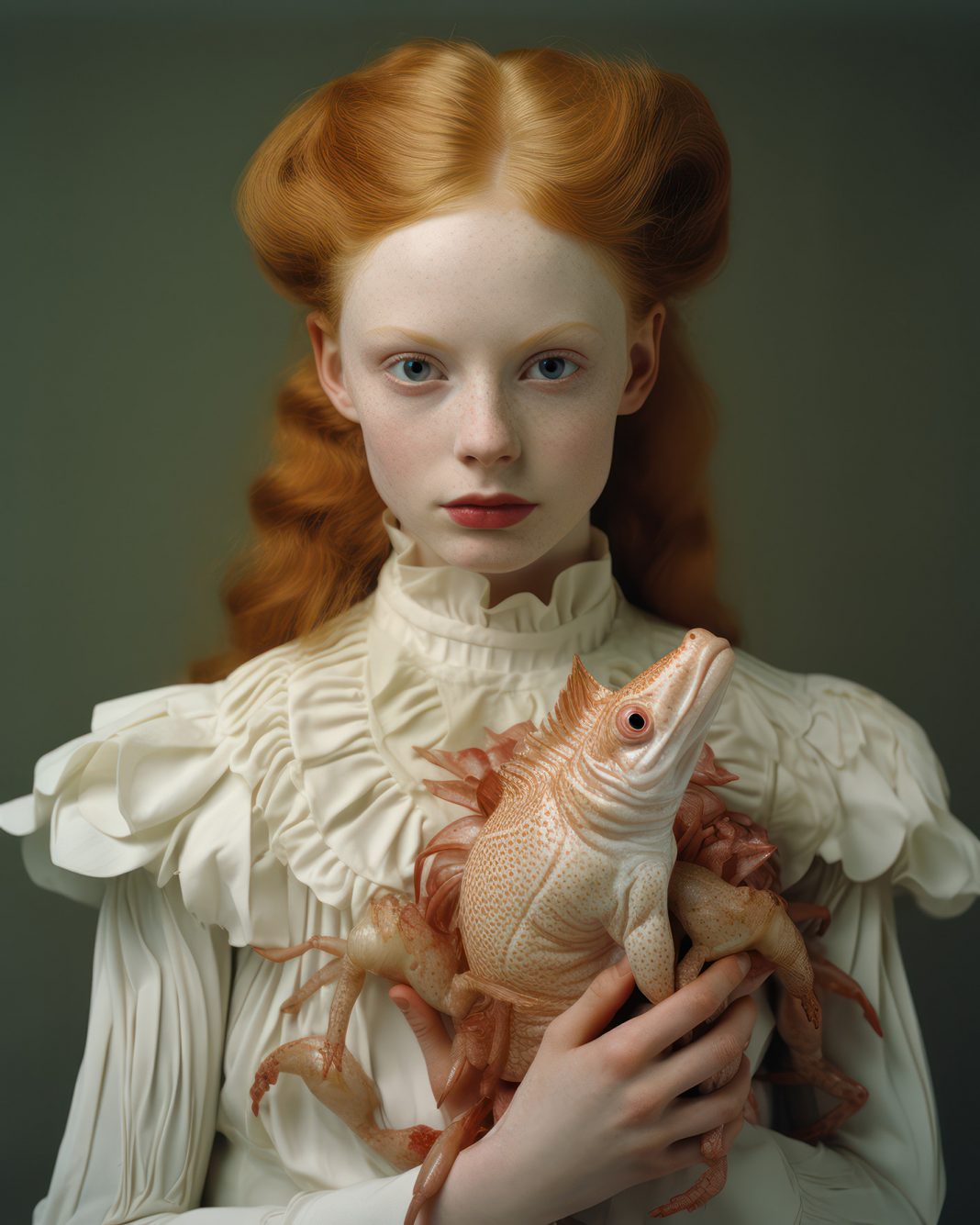 Scrive Vittoria Mascellaro: “Riflettere sull’immaginario estetico contemporaneo ammette la possibilità di volgere lo sguardo verso immagini generate tramite intelligenza artificiale; un fenomeno spesso stigmatizzato da parte di molte categorie di lavoratori del settore creativo, secondo i quali tali riproduzioni non possono essere considerate delle opere d’arte. Un giudizio strettamente dipendente da una sopravvalutazione di software di AI, inteso come entità autonoma, in grado di sostituirsi in maniera completa all’estro umano. Eppure, la ricerca riguardo al rapporto uomo-macchina in campo artistico rende evidente come alla base di questi modelli generativi vi siano sempre dati offerti dall’uomo, a partire dai quali è possibile realizzare delle nuove elaborazioni visive.