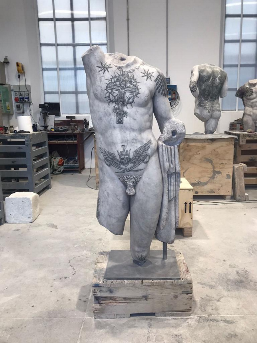 Galleria Poggiali (www.galleriapoggiali.com) presenta, fino al 23 luglio 2023, “Beauty. Difference & Repetition”, doppia personale di Luca Pignatelli e Fabio Viale. Se di Viale viene esposto per la prima volta un busto di “Apollo” con l’aggiunta di un arto inferiore, di Pignatelli è presentato un grande tappeto persiano, con una testa femminile di matrice classica.