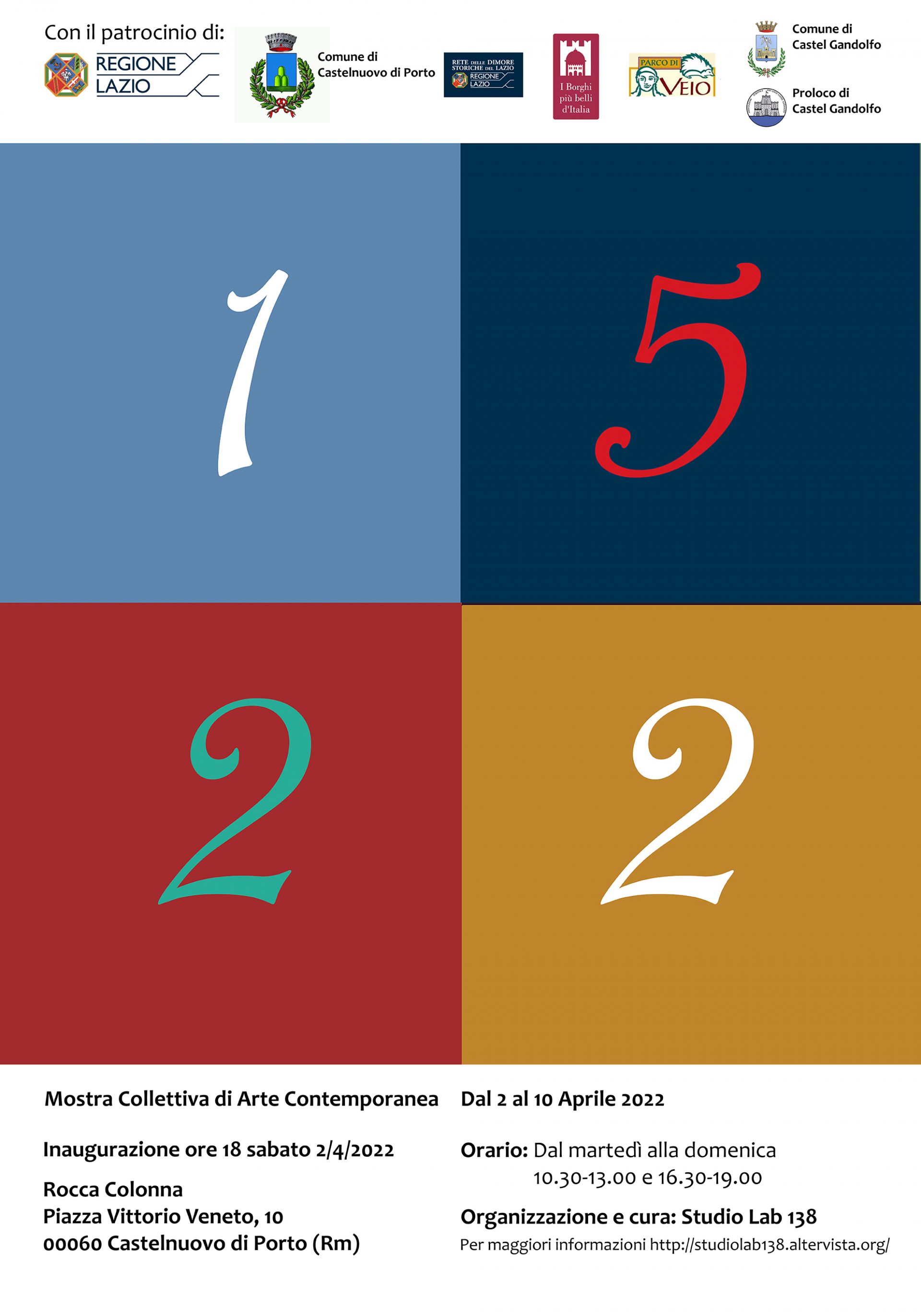 1522 è una mostra collettiva itinerante, il cui primo appuntamento è stato inaugurato a Pavona di Castel Gandolfo l’8 marzo 2022, Giornata internazionale dei diritti della Donna, con l’obbiettivo di aumentare la visibilità del numero telefonico 1522 attivato nel 2006 dal Dipartimento per le Pari Opportunità, gestito dalla ONG Differenza Donna, e contemporaneamente dare il via ad una discussione sulla discriminazione di genere avviando delle proposizioni positive.
