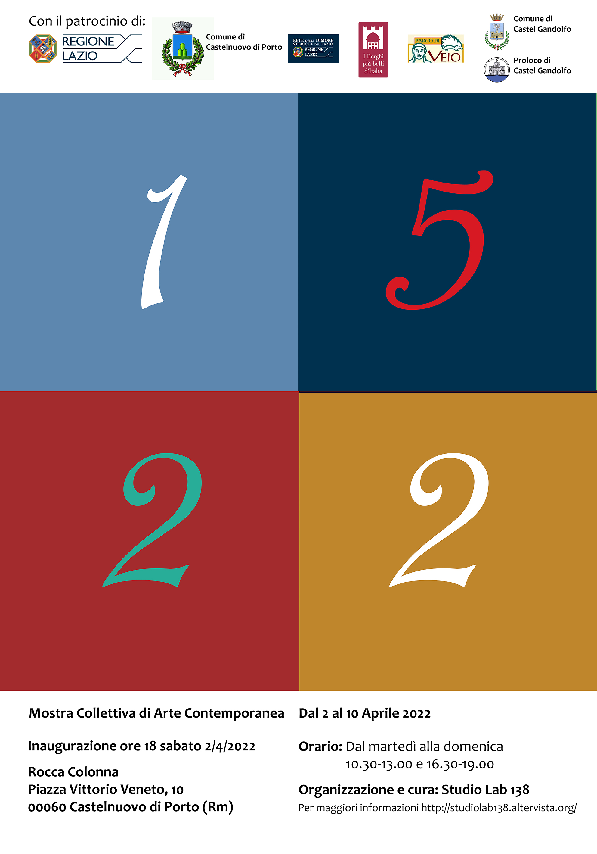 Patrocini: Regione Lazio, Comune di Castelnuovo di Porto, Comune di Castel Gandolfo, Proloco di Castel Gandolfo