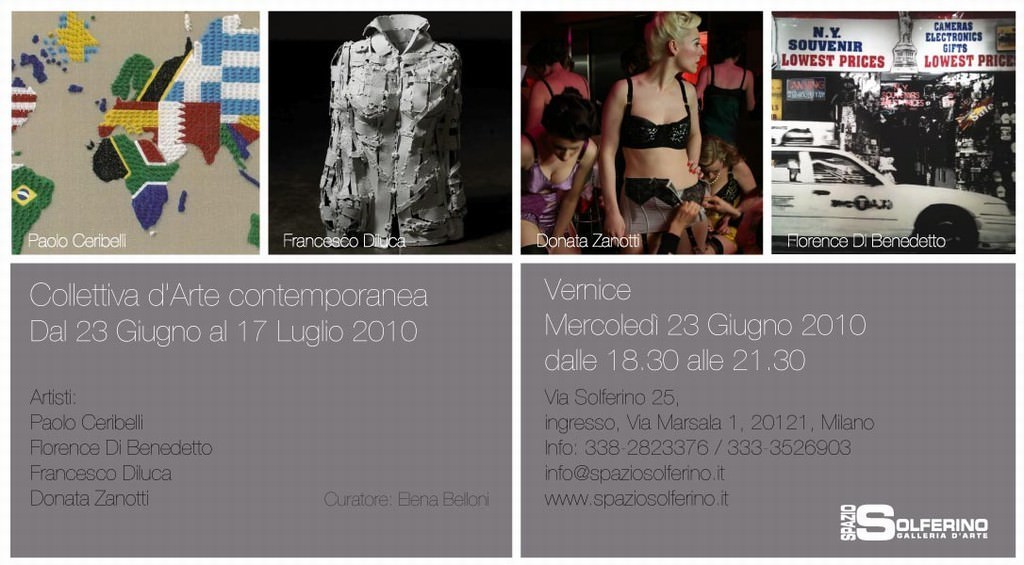 Spazio Solferino dedica una collettiva d’arte a quattro personalità della scena contemporanea italiana, due opere di Paolo Ceribelli, due fotografie di Florence di Benedetto, quattro sculture di Francesco Diluca e tre fotografie di Donata Zanotti.