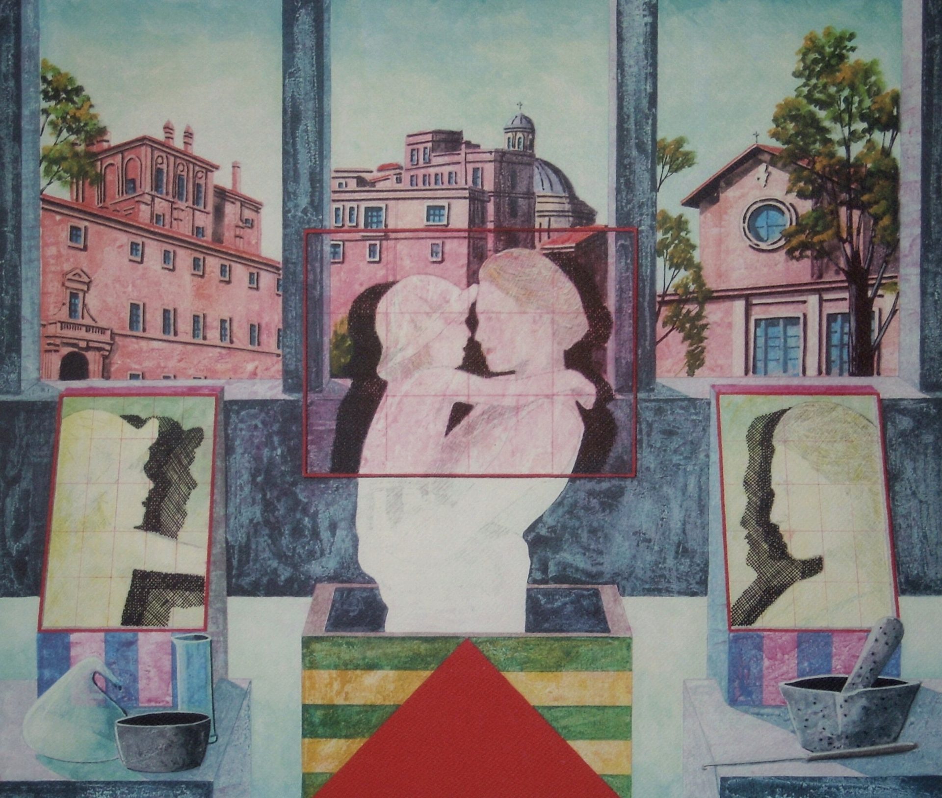Di Tonino Caputo notissimo paesaggista urbano è presente un'opera in cui suggestioni onirico-surrealiste dialogano con bozze di ritratti immerse in una realtà cittadina.