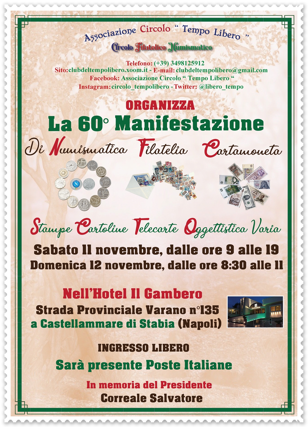 Il prossimo weekend di sabato 11 e domenica 12 novembre 2023, si terrà la 60° edizione del Memorial Correale, la storica manifestazione di collezionismo che ogni anno richiama migliaia di visitatori da tutta Italia.