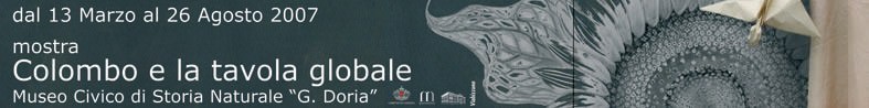 Un percorso attraverso le piante provenienti dalle Americhe, che diventa il pretesto per un “viaggio” simbolico: questi, in sintesi, i contenuti della mostra “Colombo e la tavola globale” che inaugura oggi, 12 marzo, alle ore 17.30 e sarà visitabile dal 13 marzo al 26 agosto 2007 (dal martedì al venerdì ore 9.00-19.00; sabato e domenica ore 10.00-19.00) al Museo Civico di Storia Naturale “G. Doria”.