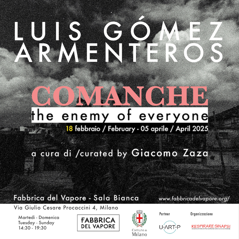 A febbraio 2025, l’artista cubano Luis Gómez Armenteros sarà protagonista di una doppia personale dal titolo Comanche (The enemy of everyone), curata da Giacomo Zaza. L’evento, promosso dalla Fabbrica del Vapore e dal Comune di Milano in collaborazione con U-ART-P di Bergamo, si terrà in due sedi: il 18 febbraio presso la Fabbrica del Vapore di Milano e il 22 febbraio nello spazio The Place di Bergamo.