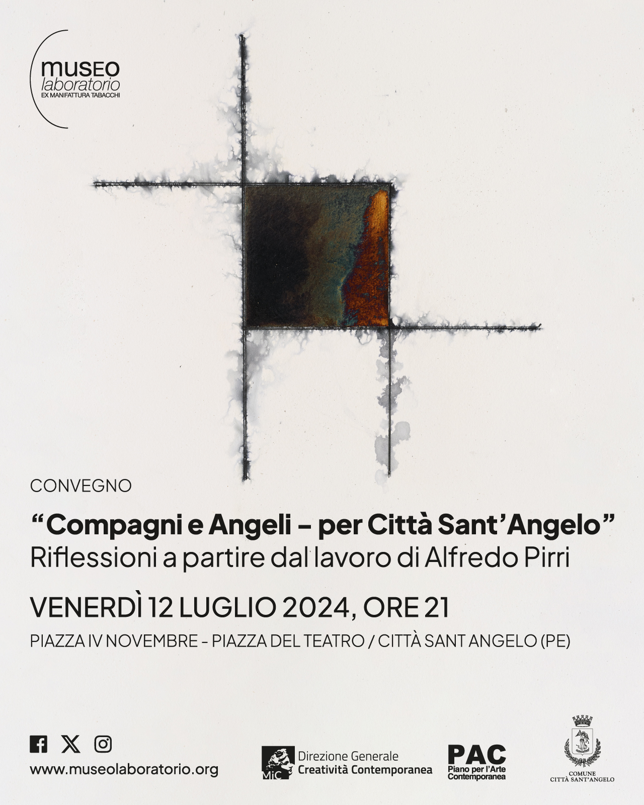 Il 12 luglio alle ore 21.00 in Piazza del Teatro a Città Sant’Angelo, il Museolaboratorio presenta il convegno “Compagni e Angeli – per Città Sant’Angelo” che vuole essere un contributo alla riflessione a partire dal lavoro dell’artista Alfredo Pirri.