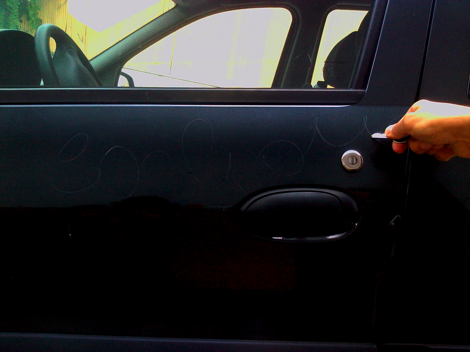 Performance dove ognuno è invitato a compiere un atto disarmante e solitamente illecito: lo sfregio di un automobile. In questo caso è l'artista stesso a chiederci uno sfregio, sul tema "crisi".