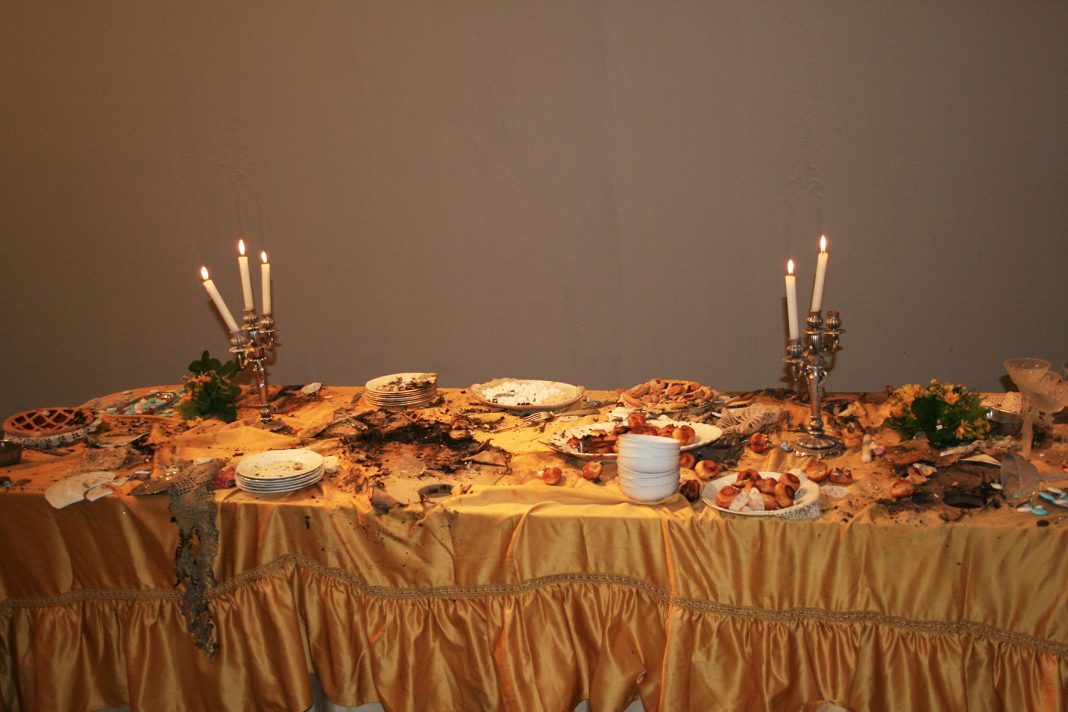 performer-regista partecipano a un’azione conviviale, scandita da quattro portate e da una mise en place-installazione, degustando un menù “inedito” nato dalla collaborazione tra lo chef e l’artista.