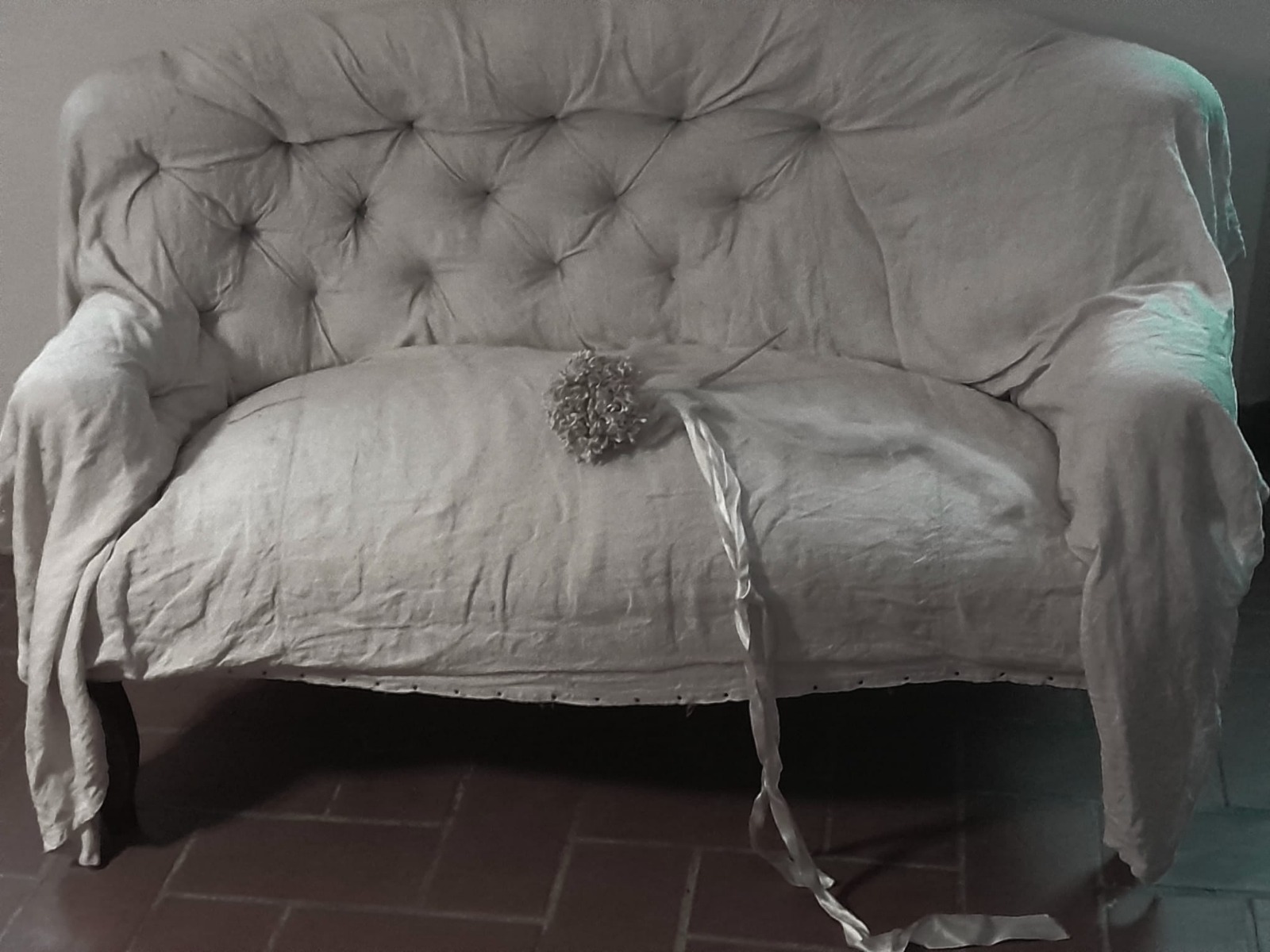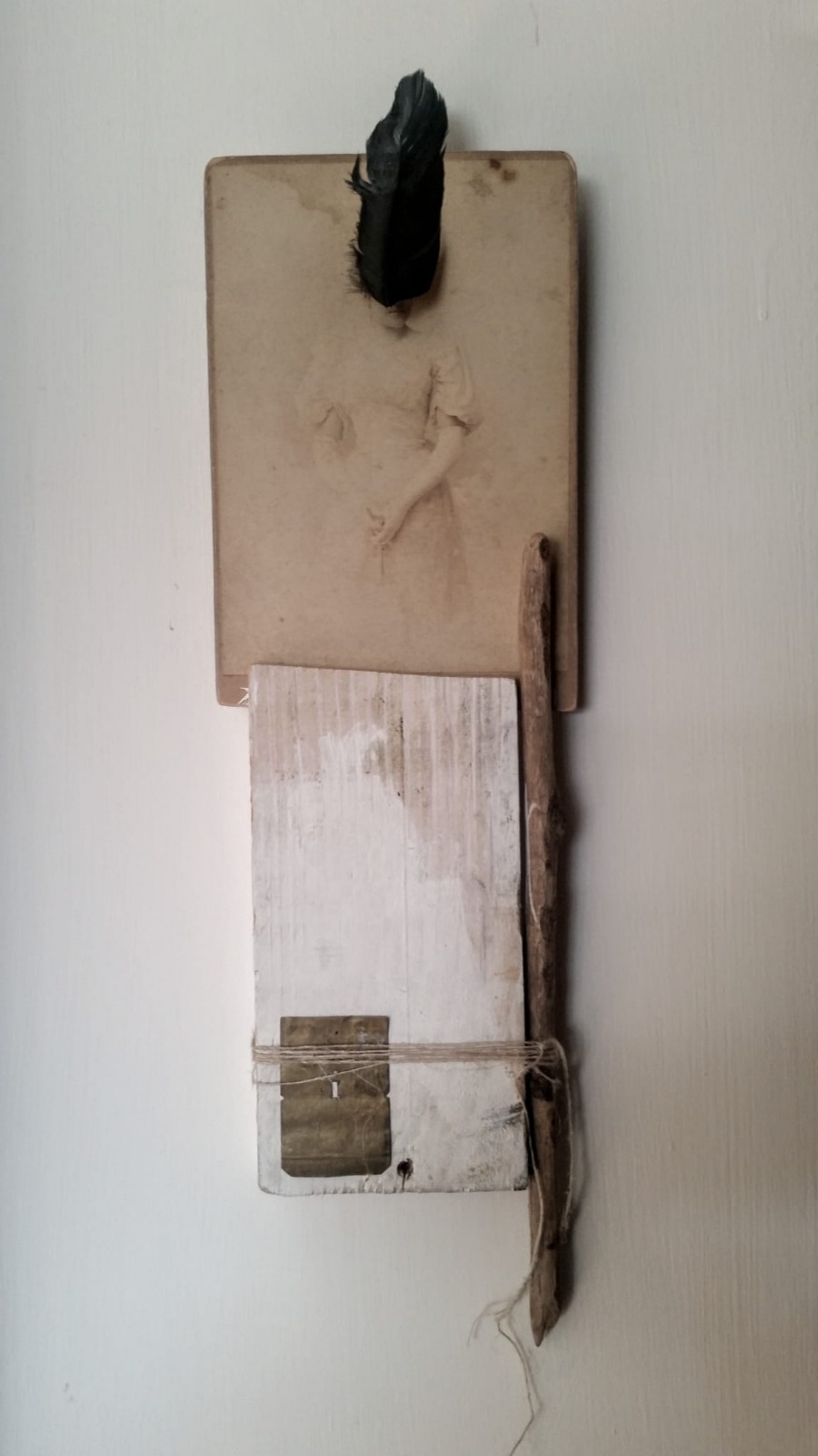 In una stanza suggerita da un piccolo divano, alcuni elementi sparsi descrivono una sorta di naufragio. Alcune vecchie fotografie, frammenti di legno recuperato, teli da corredo, e metalli ossidati.