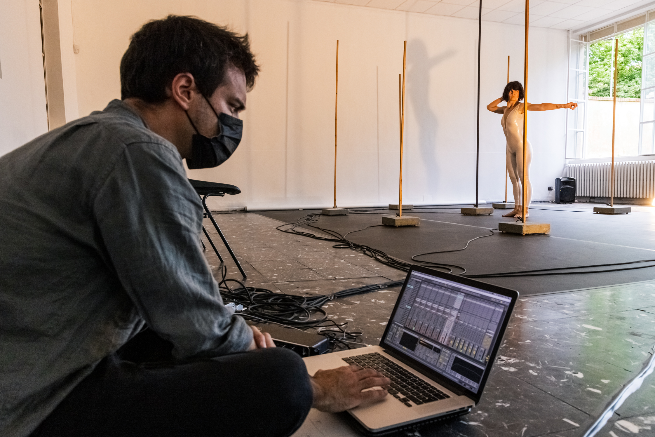 danza libera e arcaica. Come un eco, i movimenti di lui influenzano il suono