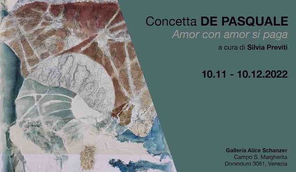 La mostra personale "Amor con amor si paga" dell’artista Concetta De Pasquale è la nuova esposizione della Galleria Alice Schanzer di Venezia, visitabile dal 10 novembre al 10 dicembre 2022, a cura di Silvia Previti.