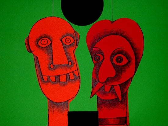 Il pittore ci vuole dire che il burattino può “dire tutto” e che non può essere sottoposto a censura perché parla “duale”, recita altro, oltre. Insomma un burattino “autre”,un burattinaio che fa muovere burattini,maschere,teste che ti guardano,anche quelle intruse e indifferenti pur non essendosi date appuntamento.