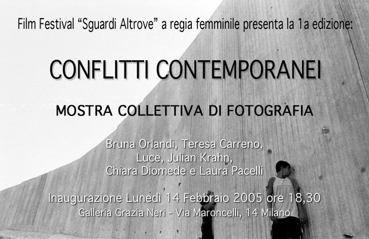 Un viaggio attraverso gli scatti di 6 fotografe che racconta i conflitti e le contraddizioni del nostro tempo, partendo dal muro israelo/palestinese, attraverso la Bosnia, la Turchia (Kurdistan) e l¹Eritrea E¹ lo scontro di culture, religioni, interessi geopolitici ed economici. Guerre, talvolta silenziose o distorte per scelta dei media.