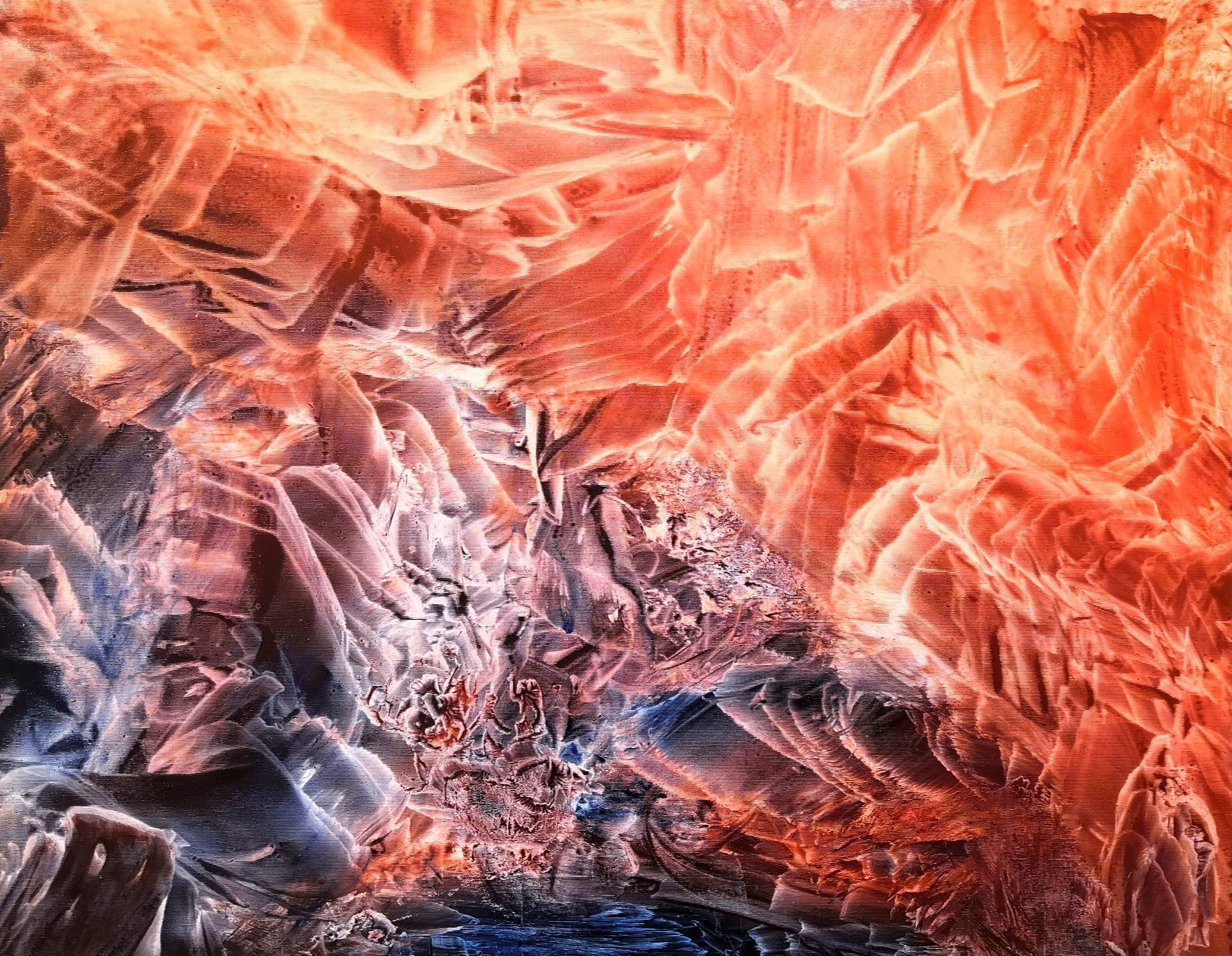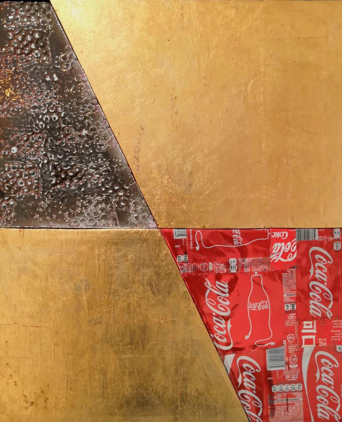 Lungo il percorso espositivo, l’energico universo visivo della pop-art lascia spazio all’espressività più intima dell’arte informale: è questo lo spazio in cui l’arte si libera da qualsiasi schema predefinito, le pennellate si fanno gestuali, libere e spontanee e danno forma a paesaggi interiori che catturano lo sguardo dell’osservatore in una danza di colore e luce. Sono opere che sfidano la nostra percezione e ci accompagnano in un viaggio oltre i limiti fisici della tela e oltre i confini della forma. Al pari di alcuni paesaggi astratti presenti in mostra, questi lavori stimolano l’immaginazione e interrogano l’osservatore, invitandolo ad offrire il proprio contributo di pensiero e di emozione. Non manca, infine, un’interessante incursione nell’arte figurativa, con una serie di opere che gettano un ponte tra passato e presente, rielaborando l’antica iconografia sacra in chiave contemporanea, attraverso simboli che riportano a una sacralità universale.