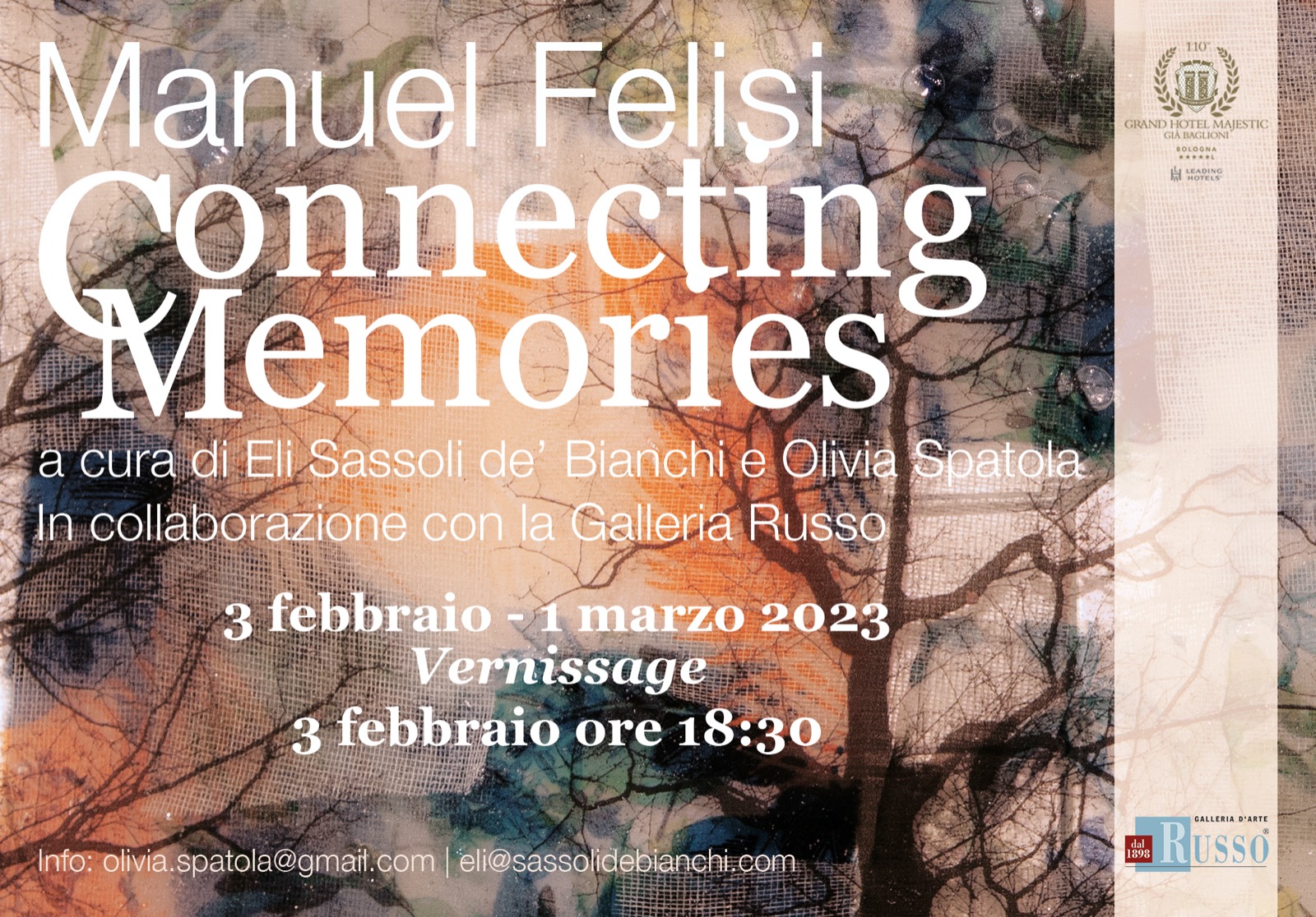 Il Grand Hotel Majestic già Baglioni, in occasione di Arte Fiera 2023, ospita la mostra personale di Manuel Felisi intitolata Connecting memories a cura di Eli Sassoli de’ Bianchi ed Olivia Spatola, in collaborazione con la Galleria Russo.