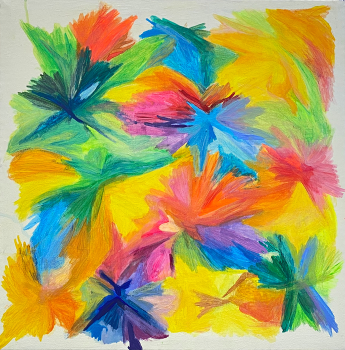 Il fluire di movimento ed energia emerge soprattutto attraverso l’uso del colore all’interno dei quadri di Alice Voglino (1995, Ungheria), artista italiana che ha base a Verona, dove ha conseguito il Diploma Accademico di I livello alla Scuola di Pittura dell’Accademia di Belle Arti. Con i suoi lavori – che definisce paesaggi emotivi – cerca di presentare la poliedrica complessità della realtà spesso ridotta dalla visione comune a singoli e isolati aspetti del tutto, scollegati, lontani dal significato dell’esistenza.