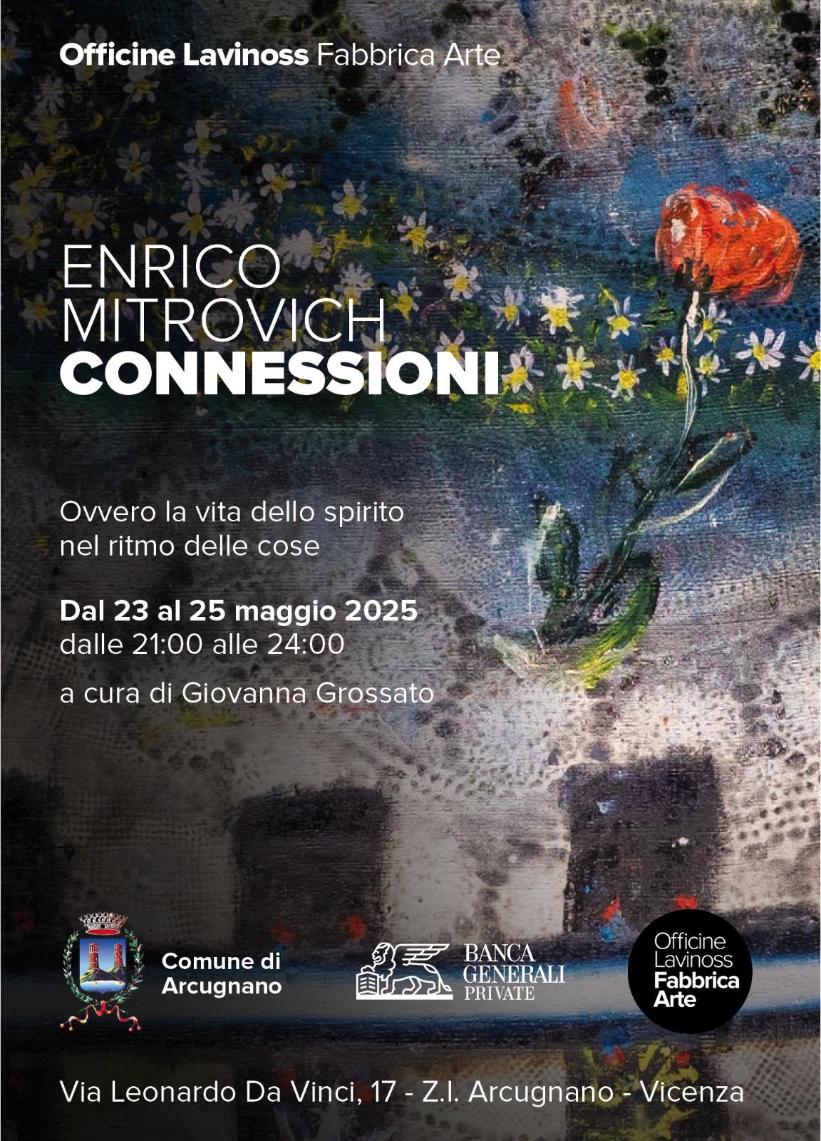 Dal 23 al 25 maggio 2025, Officine Lavinoss, storica realtà della lavorazione dell'acciaio, si trasforma in Fabbrica Arte, spazio d'incontro tra industria e cultura, per ospitare la mostra personale di Enrico Mitrovich, intitolata CONNESSIONI – ovvero la vita dello spirito nel ritmo delle cose.