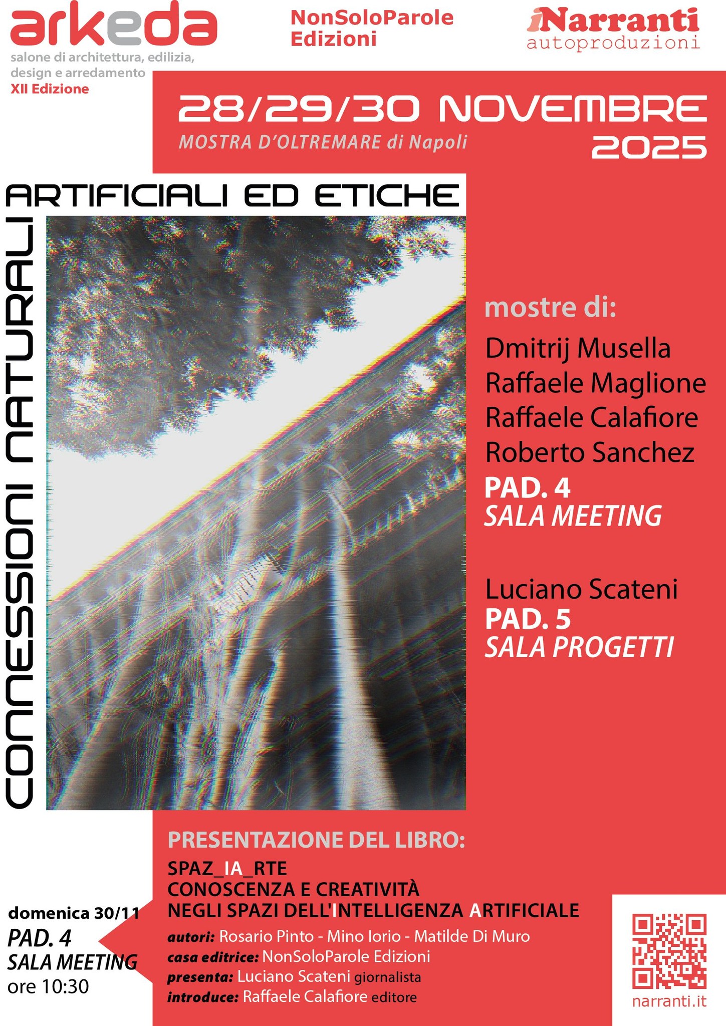 Arkeda XII ospita “Connessioni Naturali, Artificiali ed Etiche”: mostre di Dmitrij Musella, Raffaele Maglione, Raffaele Calafiore, Roberto Sanchez (Pad. 4) e Luciano Scateni (Pad. 5). Domenica 30/11 ore 10:30 presentazione del libro “SPAZ_IA_RTE” sull’Intelligenza Artificiale. A cura di Narranti.it