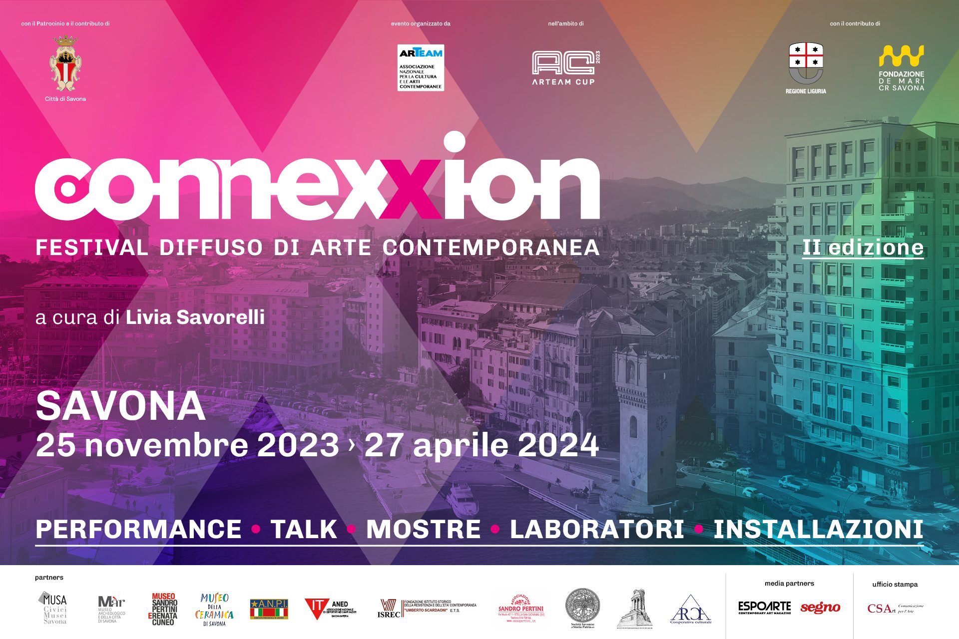 La seconda edizione di CONNEXXION sarà presentata ufficialmente al pubblico sabato 25 novembre, alle ore 16.00, nella Sala della Sibilla, sulla Fortezza del Priamàr, preceduta dalla presentazione della video-documentazione di CONNEXXION 2022 e del relativo volume dedicato (Vanillaedizioni, 2023).
