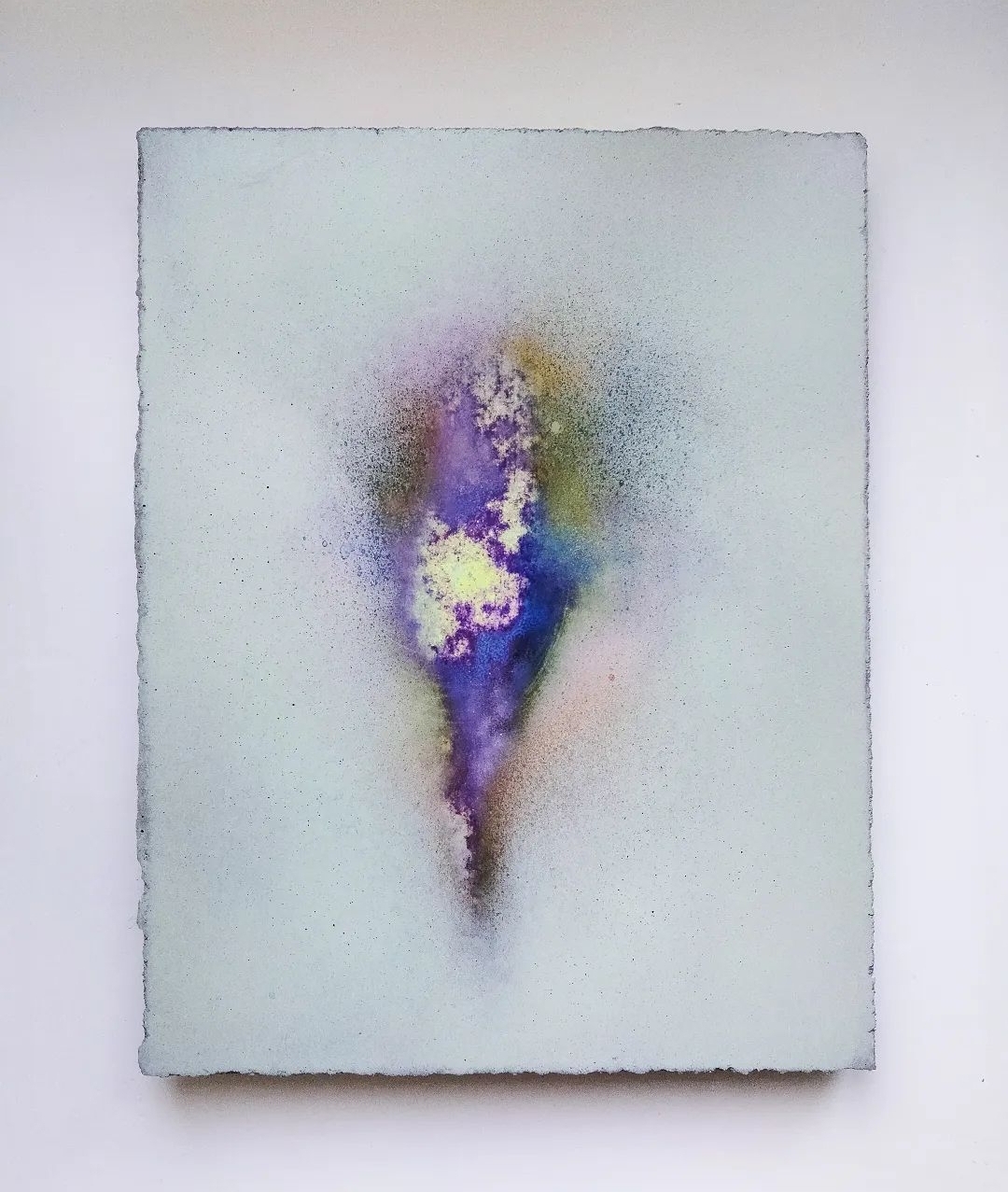 Fabio Refosco presents a large canvas created between 2019 and 2022, which was the result of a great collective effort. Pigments and resins, mixed with soap, that the artist uses in his work, leave their mark on the substrate. Therefore, the gesture is only partially controlled by the artist; the result is a delicate sediment of color, with unexpected organic implications. Groter Walpius' works draw inspiration from natural deterioration processes. His concrete panels – eroded, rough, variously affected – refer to the transience of life.