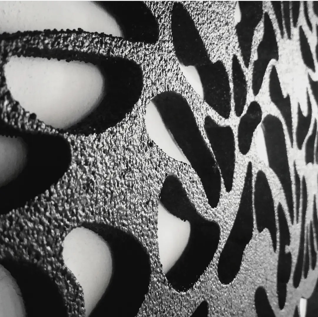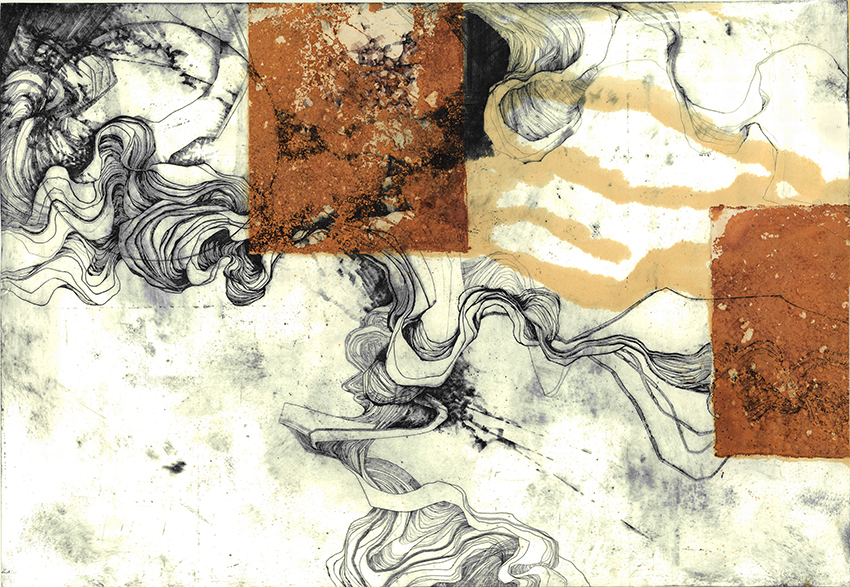 Come descrive Mattia Lpperier: Adriana Amoruso presenta un lavoro emotivo, incentrato sul sentire. I suoi intrecci e ricami intaccano la tela, dando origine ad amorfe concrezioni tinte di un violento colore rosso. L’emotività dell’artista rimane intrappolata nella tela, suggerendo una dinamica contrapposizione tra pieni e vuoti. Le sperimentazioni calcografiche di Pietro Desirò si focalizzano sulle possibilità espressive offerte dal segno. Le sue linee si aggrovigliano e si rincorrono, sino a valicare i confini imposti dal supporto, generando così una pandemica dilatazione. Le lussureggianti giungle sintetiche di Luca Matti invadono lo spazio, lo aggrediscono, si espandono, fagocitano tanto la natura quanto la presenza umana. Le sue opere celebrano, e allo stesso tempo condannano, una natura ormai giunta al collasso. Leonardo Moretti, per mezzo della sua serie di pizzi, sperimenta una dimensione istintiva che induce una riflessione sulle dicotomie del visibile e dell’invisibile; del tattile e dell’impalpabile; del fisico e dell’incorporeo. I fori che si intravedono tra le pieghe dei suoi pizzi conducono in una dimensione altra, oltre il velo dell’apparenza. Fabio Refosco propone alcuni esemplari estrapolati da due serie intitolate Organismi e Analisi. Pigmenti e resine, mescolati al sapone, lasciano la loro traccia sul supporto. Il gesto è solo in parte controllato dall’artista, il risultato è un delicato sedimento di colore, dai risvolti inaspettatamente organici. I lavori di Groter Walpius traggono ispirazione da processi di deterioramento naturali. Le sue lastre in cemento – erose, scabre, variamente intaccate – rappresentano un monito alla caducità della vita.