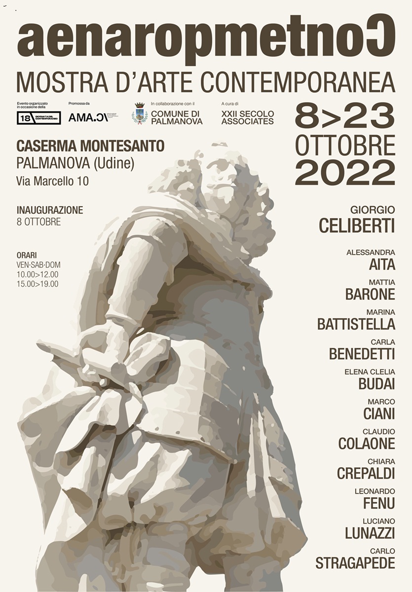 Il contemporaneo tra le mura di una caserma francese del 1800 all'interno della fortezza di Palmanova. Un percorso di conoscenza attraverso l'evoluzione dell'Arte Contemporanea a partire dagli artisti affermati fino ai giovani d'oggi tra scultura, pittura e installazione. XXII Secolo festeggerà così la 18° Giornata del Contemporaneo Amaci, con la presentazione della mostra affidata a Isabella Masutti giovane curatrice e storica dell'Arte. Ci sarà un particolare tributo allo storico artista Giorgio Celiberti che con le sue opere aprirà l'evento nella grande sala espositiva.