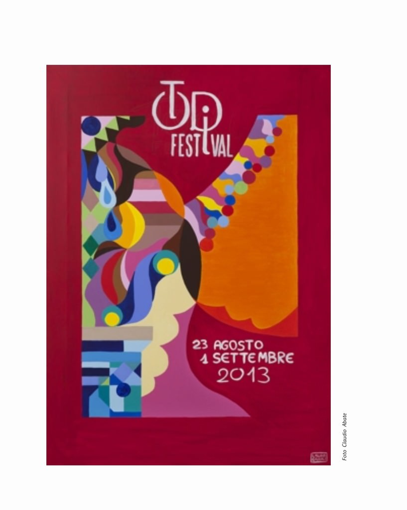 Dai celebri scatti che Claudio Abate catturò durante le rappresentazioni del teatro sperimentale di Carmelo Bene, alla processione laica di Enzo Cucchi che culminerà con la consegna di una sua opera inedita alla città di Todi; dallo slancio utopico teso alla creazione di nuovi mondi impresso nelle tele di Laura Canali (autrice del manifesto di presentazione del Festival) alla forza narrativa delle forme nelle opere di Carla Accardi.