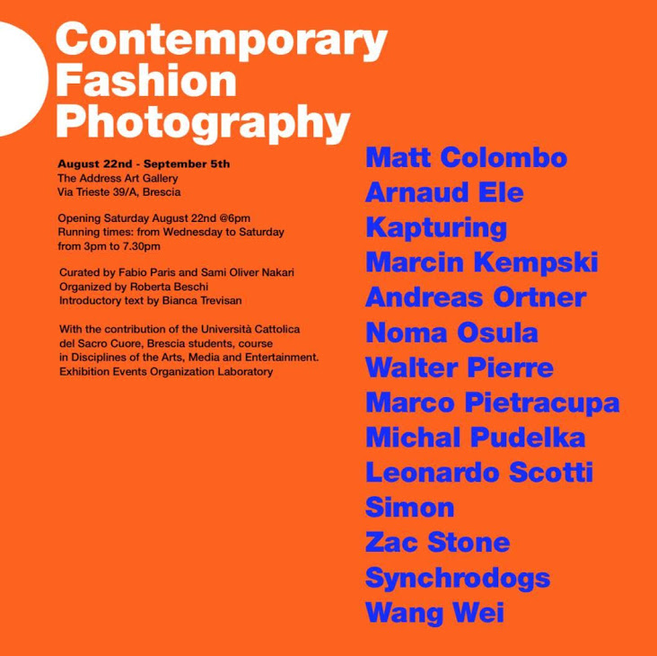 14 fashion photographers internazionali in mostra a Brescia. Artisti rinomati nel loro settore, che hanno lavorato con alcune delle riviste più famose al mondo. Evento realizzato in collaborazione con gli studenti del corso St.a.r.s. dell’università cattolica del sacro cuore di Brescia