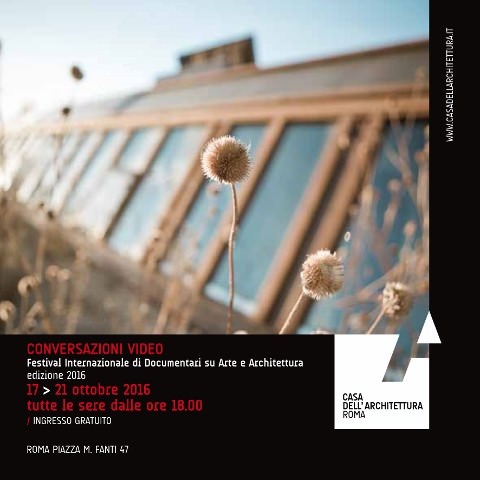 Giunto alla decima edizione, Conversazioni Video torna per il quarto anno consecutivo nella splendida cornice della Casa dell’Architettura – Acquario Romano, dal 17 al 21 ottobre 2016, tutte le sere dalle ore 18.00 ad ingresso gratuito. Il festival è l’unico concorso di documentari dedicato espressamente all’arte e all’architettura della città di Roma ed è curato dall’Associazione Culturale Art Doc Festival e promosso dal Comitato Tecnico Scientifico della Casa dell’Architettura di Roma.