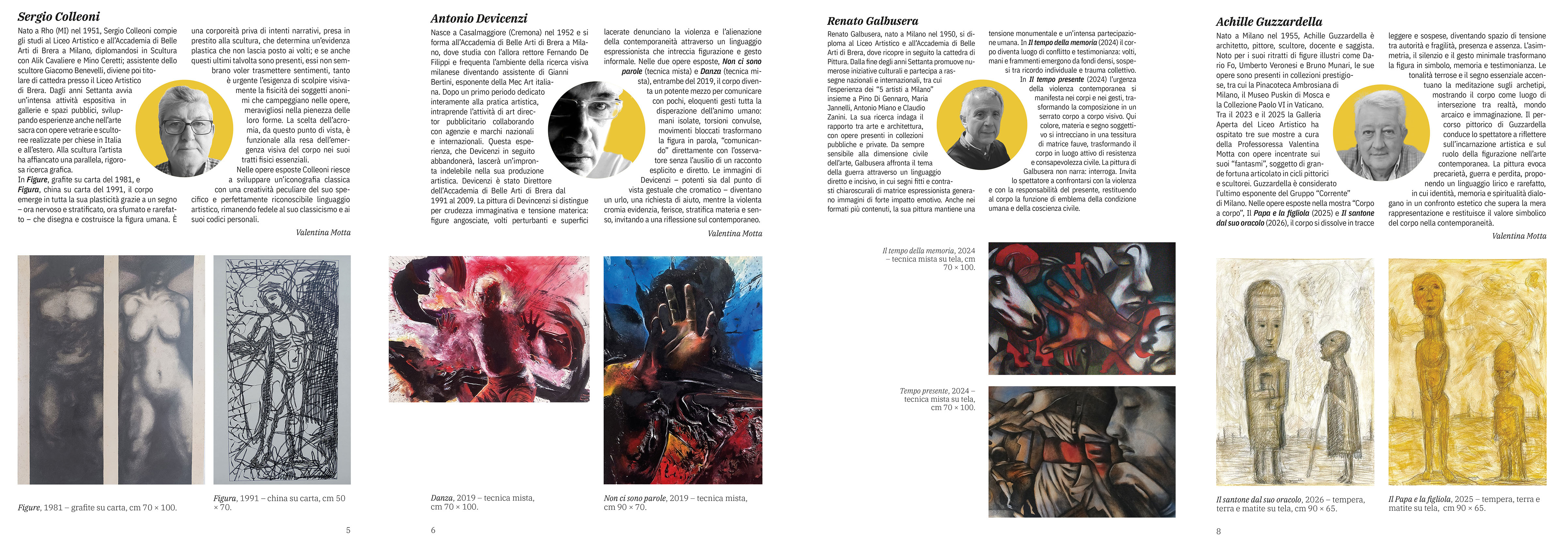 “Corpo a corpo - Artisti milanesi in mostra” nasce come riflessione condivisa sul corpo umano, inteso non solo come soggetto della rappresentazione ma come dispositivo simbolico, politico ed esistenziale attraverso cui leggere la complessità del presente. Il progetto riunisce dodici artisti milanesi legati all’Accademia di Brera, accomunati da una solida padronanza dei linguaggi pittorici e plastici e da una consapevolezza critica del fare artistico. Nel contesto dell’estetica contemporanea, la figurazione vive una rinnovata centralità: non più ritorno nostalgico, ma campo di sperimentazione aperto a ibridazioni tra espressionismo, simbolismo e pensiero concettuale. Il corpo diventa così luogo di confine tra visibile e invisibile, identità e alterità, presenza e dissoluzione, attraversato da temi quali memoria, vulnerabilità, trauma e trasformazione, mettendo in luce la complessa stratificazione del corpo come unità di realtà e immaginazione nonché come entità mitica. Il percorso espositivo evidenzia una progressiva metamorfosi della figura: dai ritratti psicologici e culturalmente connotati alle deformazioni esistenziali, fino a esiti lirici, rarefatti o smaterializzati.