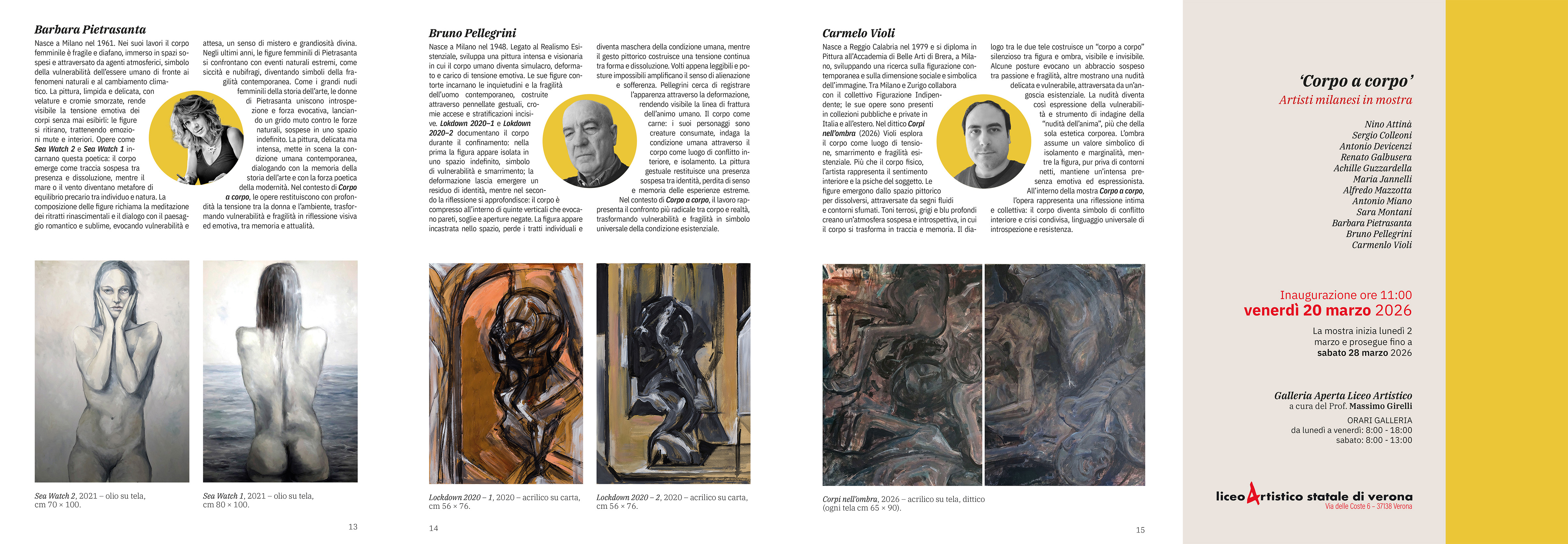 La Galleria Aperta del Liceo Artistico Statale di Verona ospita la mostra "Corpo a corpo", che riunisce artisti milanesi, per lo più membri della Società Belle Arti "La Permanente" di Milano, legati al Liceo Artistico e all'Accademia di Brera.