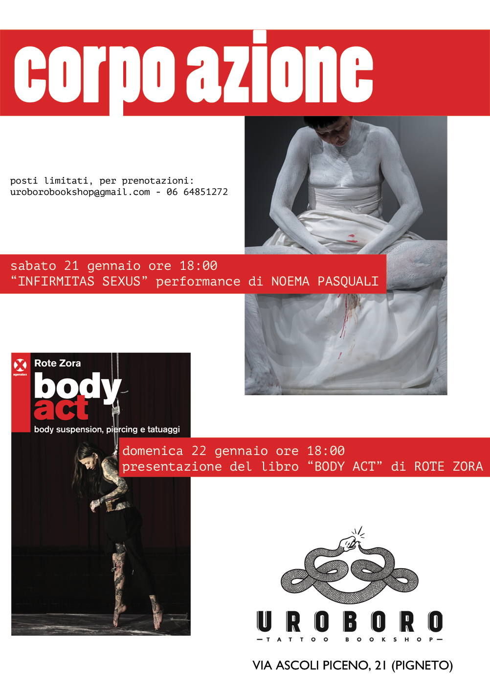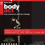 -Domenica 22 gennaio ore 18:00 presentazione del libro “Body Act – Body suspension, piercing e tatuaggi” con l’autrice Rote Zora