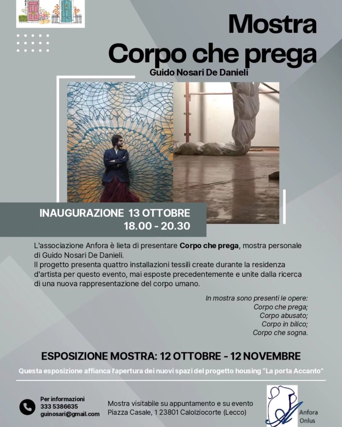 L'associazione Anfora è lieta di presentare CORPO CHE PREGA, mostra personale di
