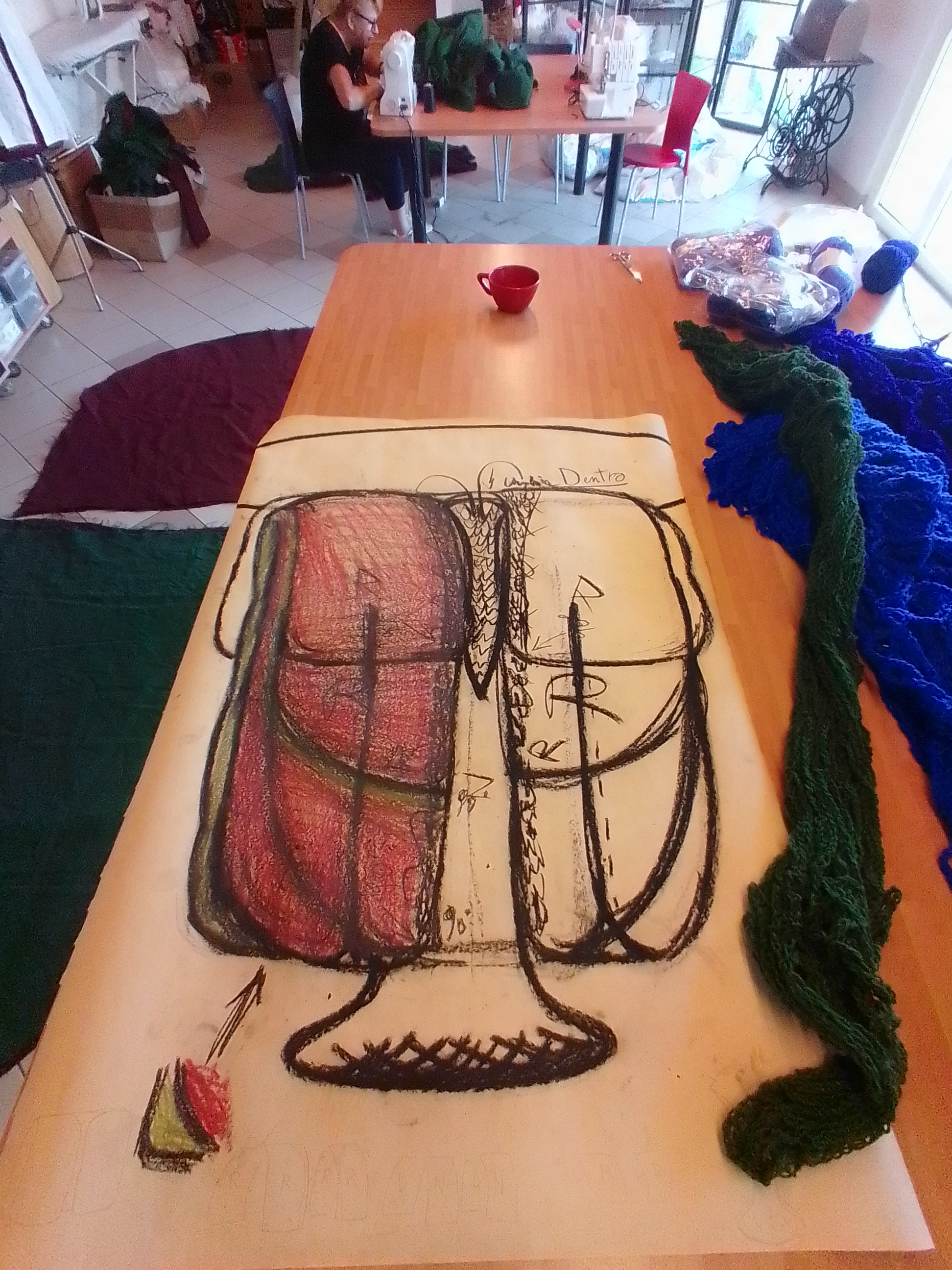 Da questi disegni l'autore ha creato altrettante installazioni tessili a partire dal