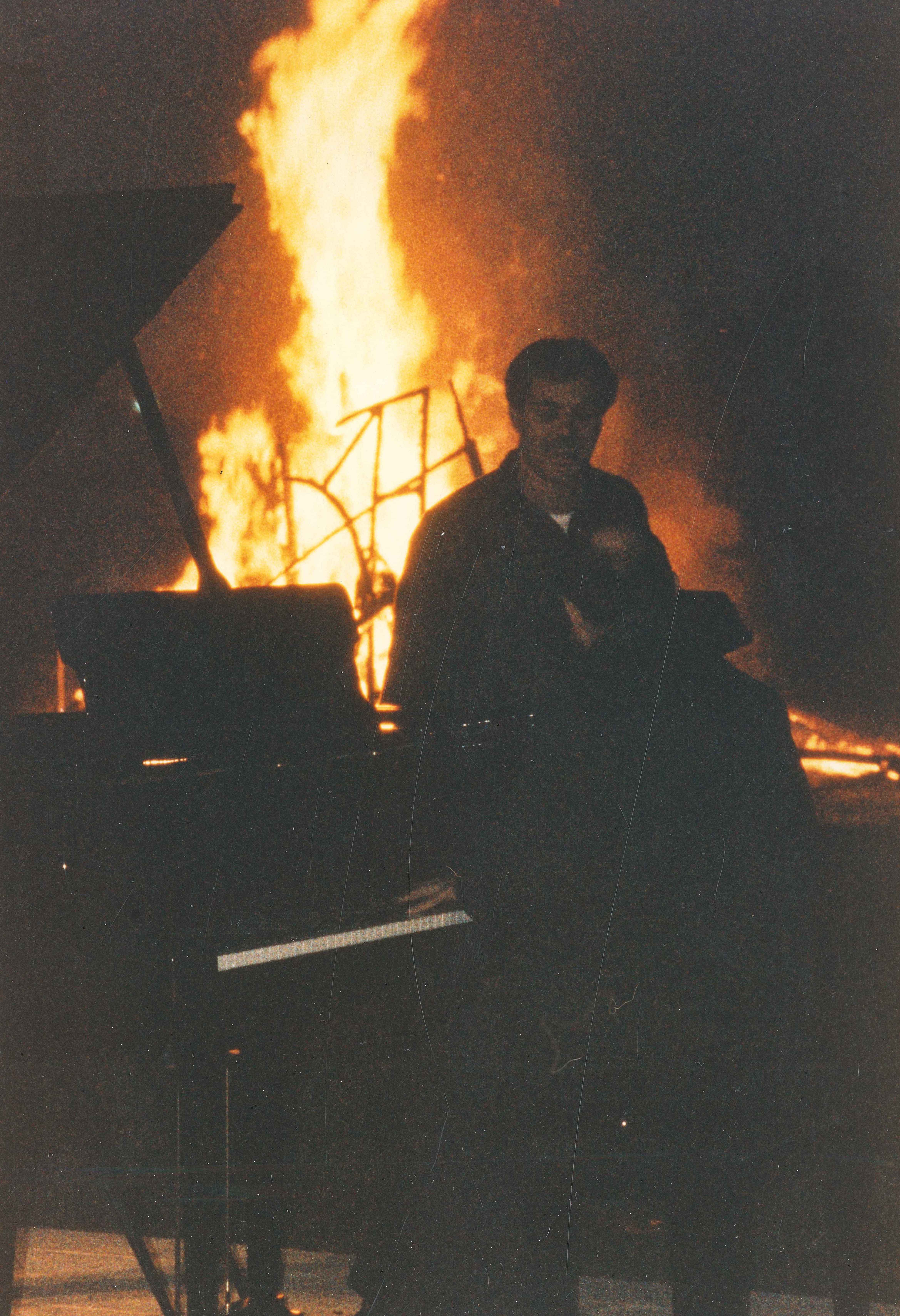 L’intervento rappresenta un punto di rottura netto con il passato. Un gesto estremo attraverso cui l’artista si libera del superfluo e smette di dipingere tele destinate ad accumularsi. Sono gli anni di Fluxus, della caduta dei vecchi regimi di cui restano solo macerie. Trent’anni di lavoro artistico arso in una notte sulle note di Sylvano Bussotti. Le ceneri prodotte dalla combustione sono poi diventate la materia prima con cui Giovanni Tufano ha dato vita ai lavori degli anni a seguire che a loro volta sono stati distrutti per produrne dei nuovi. A custodire le preziose ceneri la neonata Fondazione Tufano Giovanni, diretta dal suo presidente Josefina Tufano.
