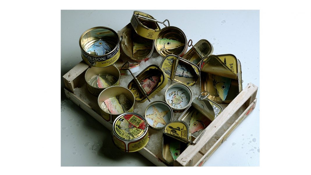 CORRADO BONOMI artista Novarese che espone dagli anni 80. A BAIETTINI 18 porta da vedere una parte delle sue installazioni MARE, realizzate nel corso del tempo. L’opera Mare presenta sorprendenti doti di elasticità. Esattamente come i pesci nel mare si allontanano o si raggruppano a seconda dello spazio a disposizione anche le scatolette possono essere raggruppate o sparse.
