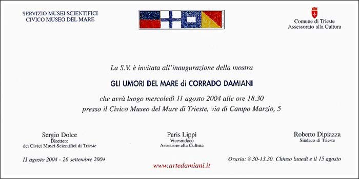 “Gli umori del mare” di Corrado Damiani compiono dieci anni e sono ospitati nel Civico Museo del Mare di Trieste nell’anno dei festeggiamenti per il suo Centenario, mentre la città prepara i festeggiamenti del 50°anniversario del ricongiungimento all’Italia ed è candidata all’Expò 2008.