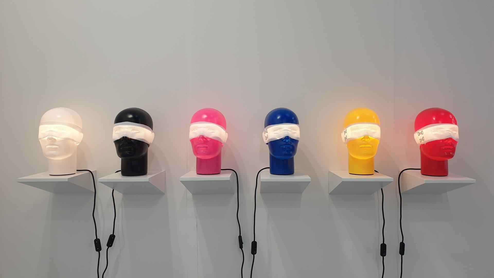 In mostra più di cento opere, piccoli dipinti di varie forme e dimensioni, unitamente alla serie completa di “Edipo Lamp”, la scultura luminosa concepita da Corrado Levi nel 2003, già pubblicata sulla copertina di Abitare nel 2004 e recentemente rinnovata e prodotta dalla galleria Fabbrica Eos in edizione limitata.