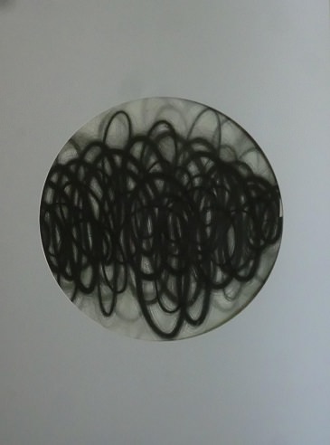 “Il movimento del lapis, ossessivo, ripetitivo e caparbio, forma matasse, ingarbugli dinamici e rotondità che svelano i piccoli imbrogli di ciò che da sempre, è per sempre. Il segno, sottile e garbato, trae forza dalla ripetizione, per creare superfici quasi metalliche che, attraverso giochi di stratificazioni ed ombre, aprono un varco nel mistero.”