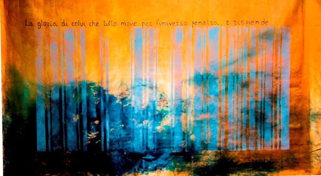 SCRITTURE, CODICI, OMAGGI - Epifanie in questa prospettiva sono anche le scritture, laddove allentino la loro centralità grammaticale per farsi forma pura. Ed epifanie letterarie sono anche i connessi bar code editoriali, i Morse code, i loghi e i marchi commerciali: tutti reinterpretati e liberati sulla tela. Con tali premesse, anche due recenti lavori di Corrado Veneziano – Il Codice Atlantico di Leonardo da Vinci e La Divina Commedia di Dante Alighieri – partecipano all’avventura di questi segni ordinari che si fanno arte. Si tratta di tele che riprendono gli schizzi di Leonardo dedicati a mai realizzati strumenti musicali e artigianali, e di alcune terzine di Dante, che Veneziano accosta al figurativo.