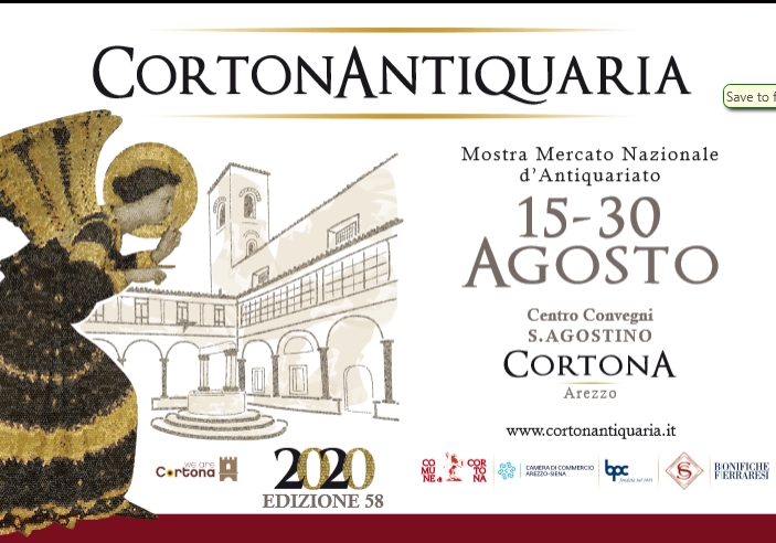 Dal 15 al 30 agosto 2020 grazie alla tenacia di Comune di Cortona e della Cortona Sviluppo, ritorna Cortonantiquaria, la mostra sull'antiquariato più antica d’Italia che giunge quest'anno alla sua cinquantottesima edizione. Quest'anno la sede non sarà più nello storico Palazzo Vagnotti ma nel più spazioso Centro Convegni di Sant'Agostino, in via Guelfa, nel centro storico di Cortona, si tratta dei locali storici del Convento, con chiesa annessa, un ambiente suggestivo e completamente restaurato. L'inaugurazione si svolgerà il 14 agosto e prevede numerose iniziative culturali collaterali all'evento stesso, che spaziano dal campo letterario con la presentazione di libri e interviste agli autori, agli eventi musicali fino a proiezioni cinematografiche, all'interno della mostra collaterale dedicata al cinema.