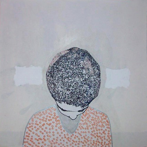 L'ironica e sconclusionata hybris mediterranea di Piediscalzi ha subito un duro colpo quando l'artista si è trasferito dalla natia Sicilia, giungendo nel freddo nord padano e assorbendo un mood riflessivo, ombroso, quasi mitteleuropeo. Un'espressionismo minimo, dunque, ulteriormente lim(it)ato nell'Autoritratto asociale con cappuccio: la distanza fra lo sfondo e la figura è massima, perché l'isolamento dell'artista è privo di colore, mentre il caos cromatico alle sue spalle minaccia di invaderne l'intimità. L'Autoritratto (pronto per uscire) invece mostra l'assurdità proliferante della moda, con un maglione geneticamente modificato e biomorfo che prende il sopravvento sull'uomo, lo avvolge in spasmi grotteschi, lo deforma nelle anatomie. Il confine fra dentro e fuori è sempre più sottile, soprattutto quando si tratta di uscire di casa, di esporsi al caos irrazionale della società. Piediscalzi si barrica dentro queste armature di stoffa (che siano sciarpe, maglioni, berretti o cappucci) per salvaguardare i confini del proprio corpo e della propria sensibilità. Ma anche questo è un vicolo cieco: nell'Autoritratto Anseren la trama della maglia sembra proliferare come un virus visto al microscopio, come cellule (t)umorali impazzite che hanno assorbito la malattia dal mondo inquinato. L'unico modo allora di affrontare la dimensione dell'altro da sé è armarsi di una grossa mazza chiodata, anche quando l'esterno appare come una rassicurante distesa di giallo/sole.