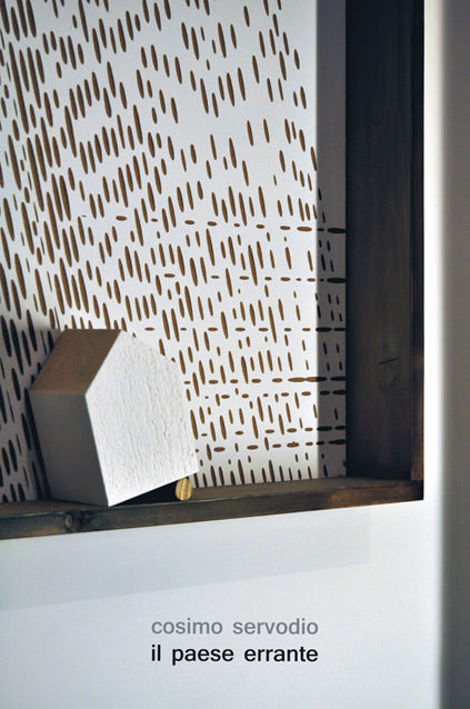 Il paese errante è il titolo di un breve racconto di Cosimo Servodio e, al tempo stesso, di un ciclo di lavori che a quel racconto fanno riferimento, pure rimanendo la scrittura e visivo su registri autonomi. Il racconto, infatti non spiega le opere e questo che caratterizza la ricerca dell’artista