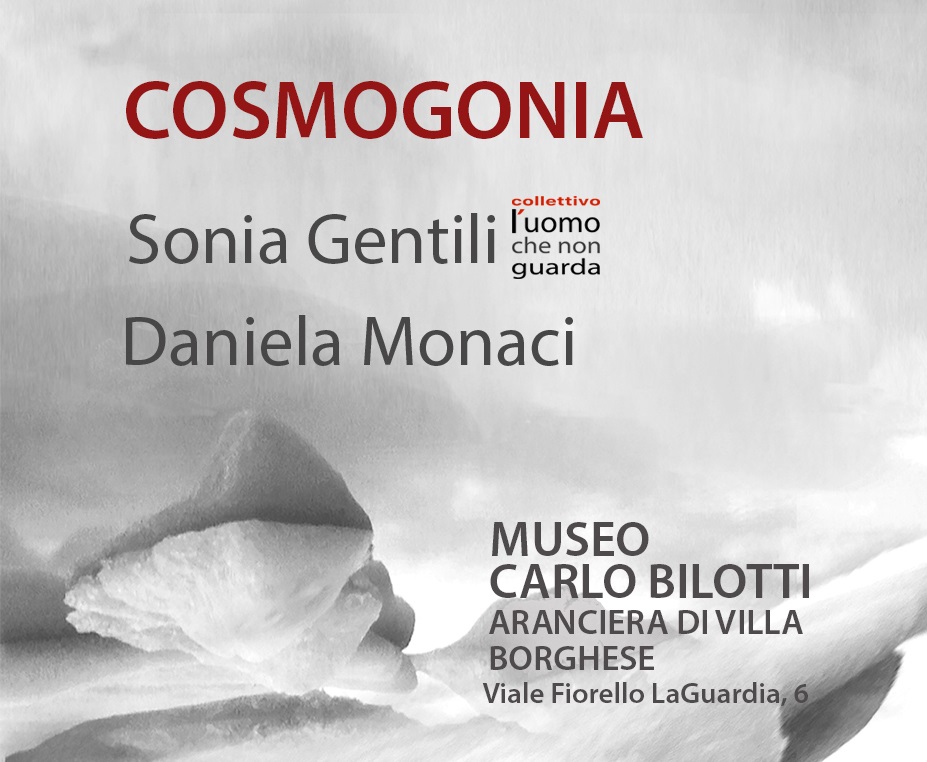 La mostra Cosmogonia ospita il dialogo sensoriale tra le opere di Daniela Monaci e le poesie di Sonia Gentili trasformate in installazioni visive dal collettivo artistico L'uomo che non guarda (Sonia Gentili e Ambrogio Palmisano).